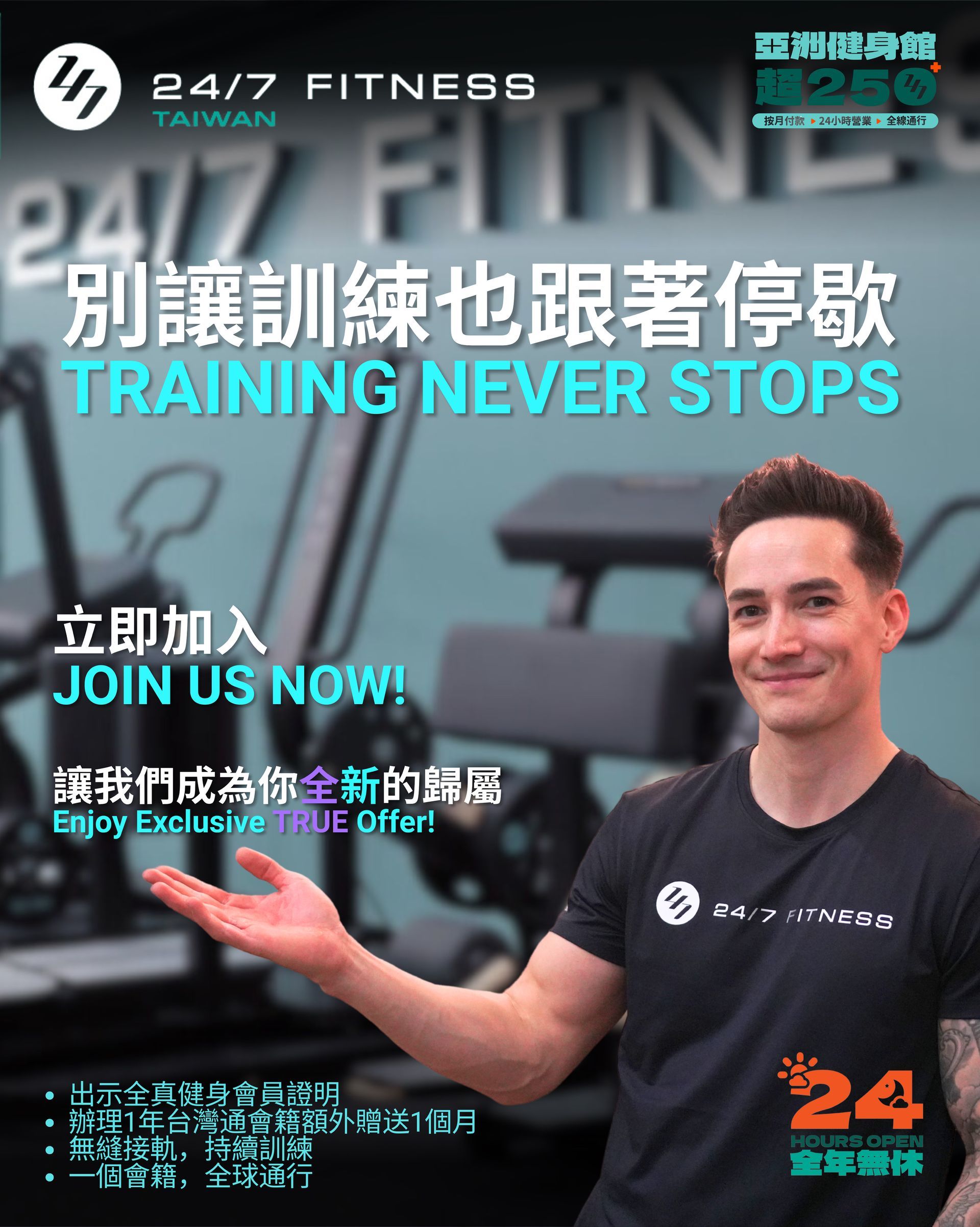加入會員後,你就能在台灣、新加坡、香港、中國大陸、澳門等地,超過 250 個據點自由運動,按月付費,無壓力,零套路,讓你健身回歸自在。