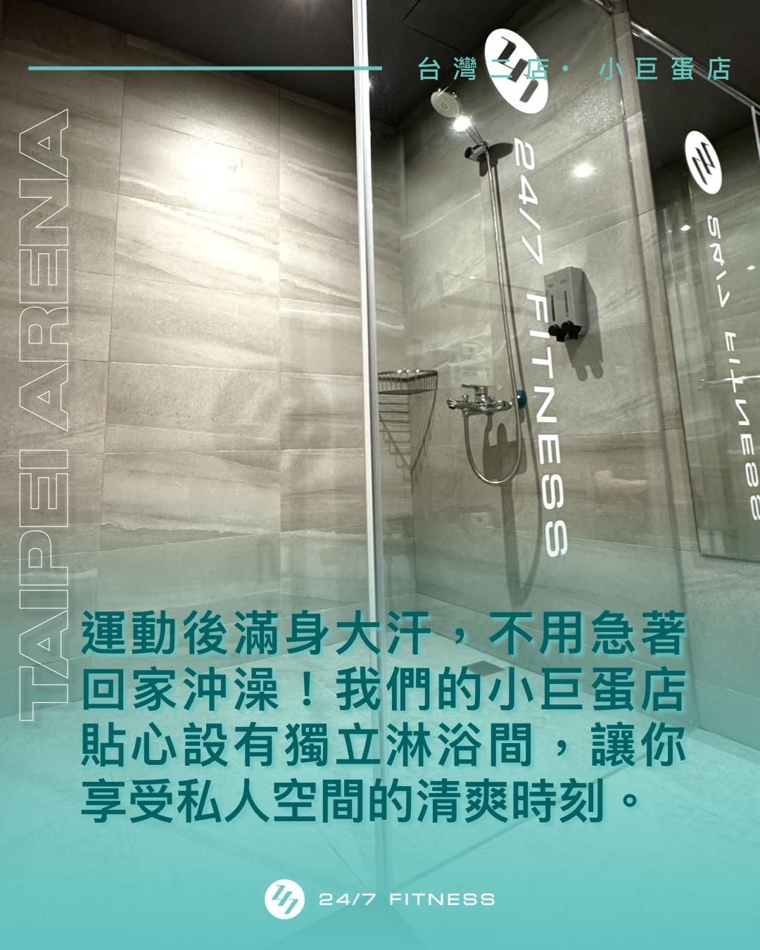 運動後滿身大汗,不用急著回家沖澡!我們的小巨蛋店貼心設有獨立淋浴間,讓你享受私人空間的清爽時刻。